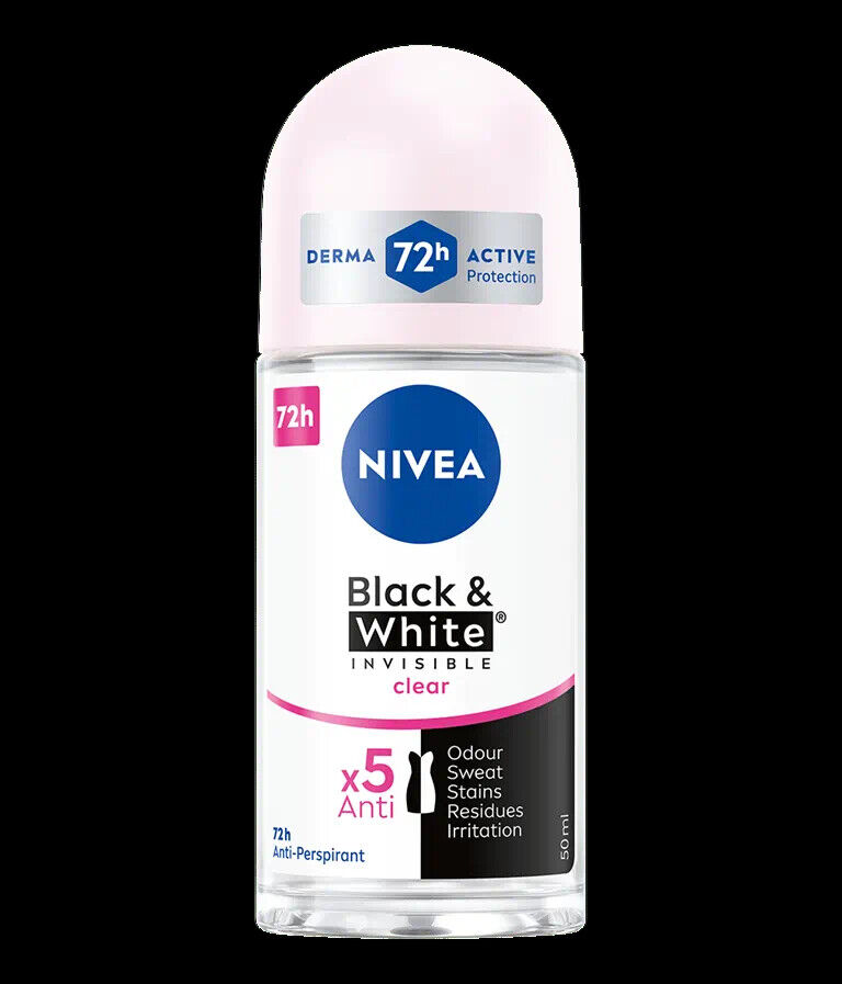 NIVEA Invisible Black & White Clear 48hr Anti-Perspirant Deodorant Roll-On 50ml