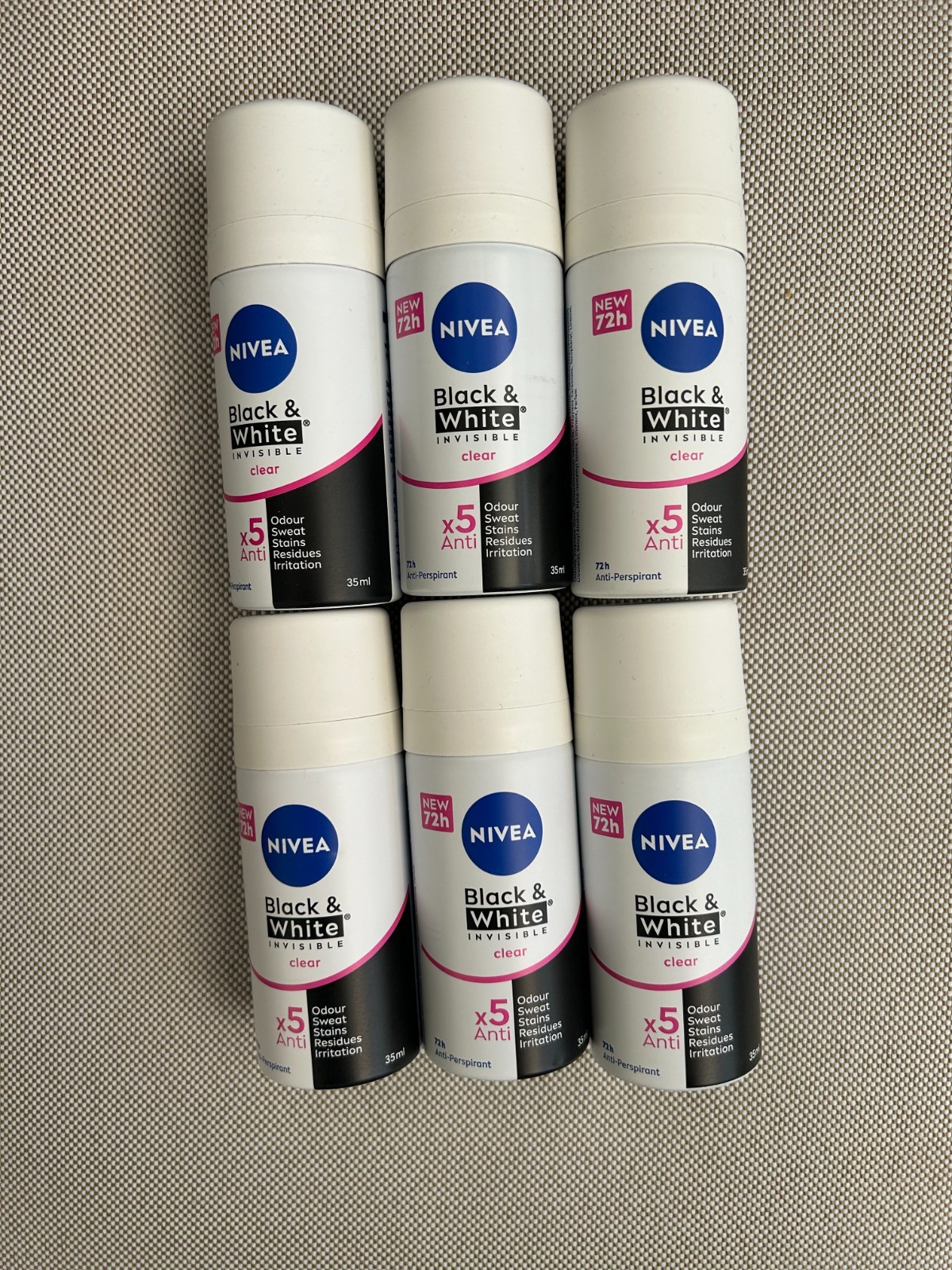 NIVEA Black & White Invisible Clear Anti-Perspirant Deodorant Spray 6 x 35ml