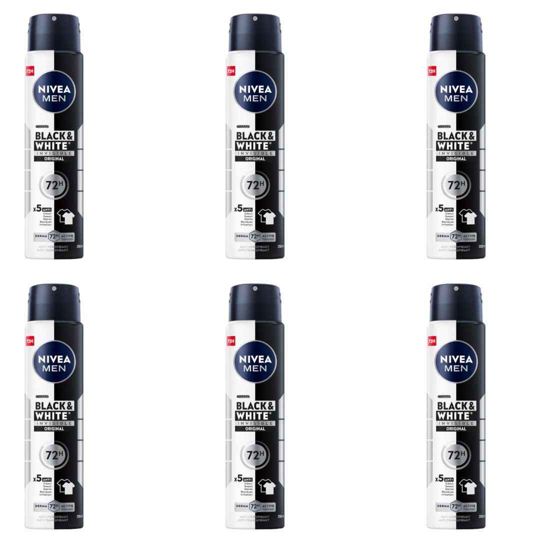 NIVEA Men Black & White Invisible Original Spray 6 X 150 Ml, Men'S Deodorant 72H