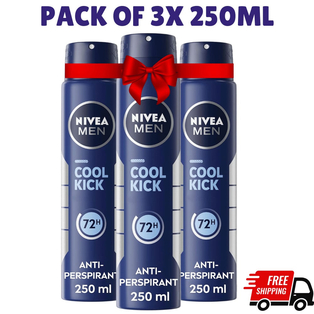 NIVEA Nivea Men Cool Kick Anti-Perspirant Deodorant Spray, 250ml (Pack of 3)