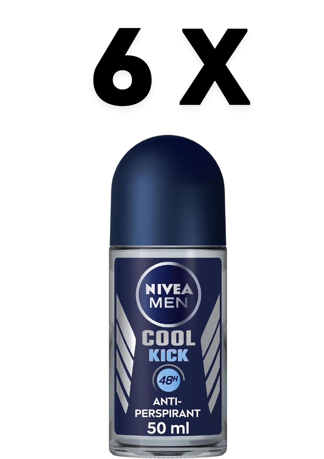 NIVEA MEN Cool Kick Anti-Perspirant Deodorant Roll on Pack of 6 (6 X 50 Ml)