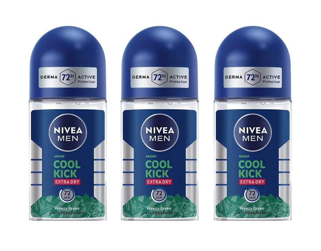 3 x 50ml Nivea Men 72Hr COOL KICK EXTRA DRY Anti-Perspirant Deodorant roll on