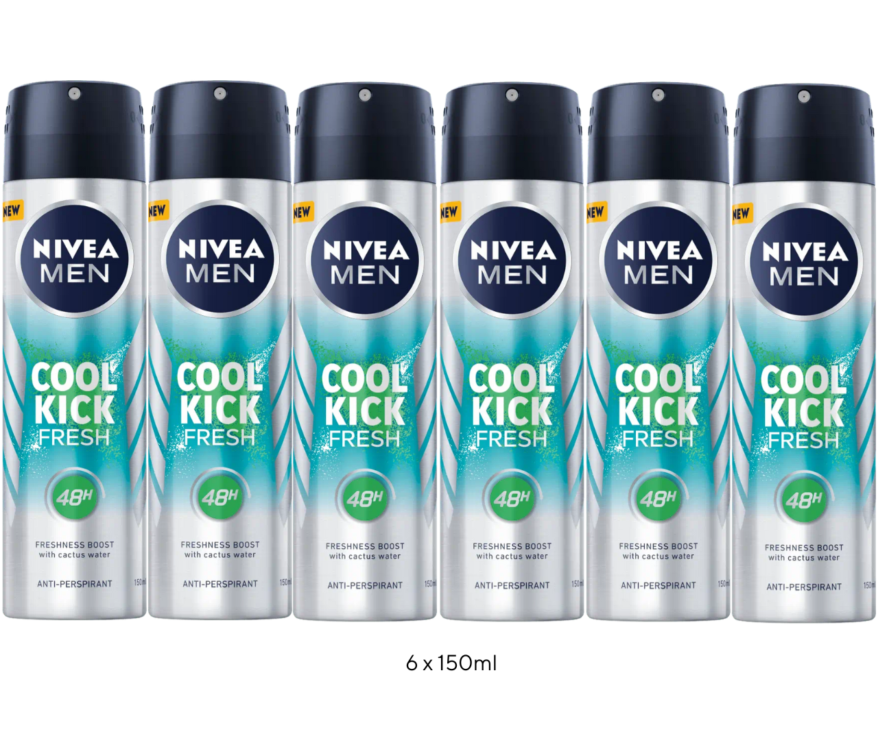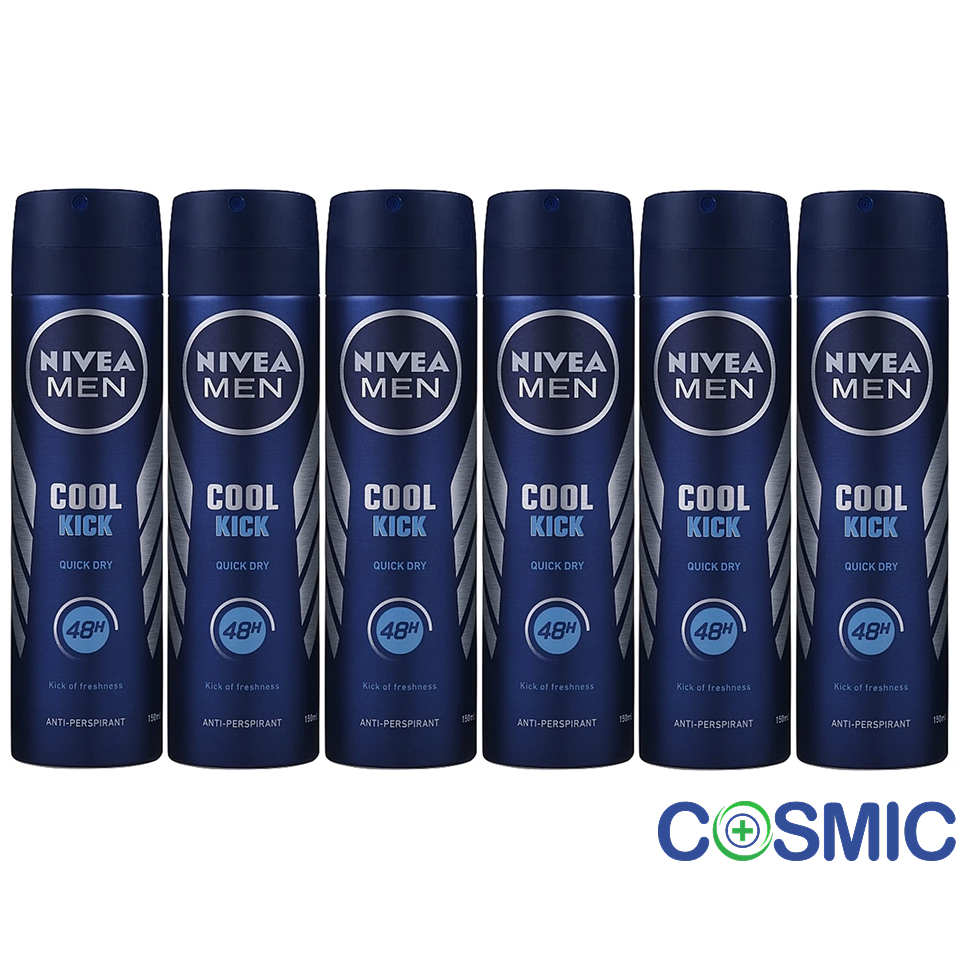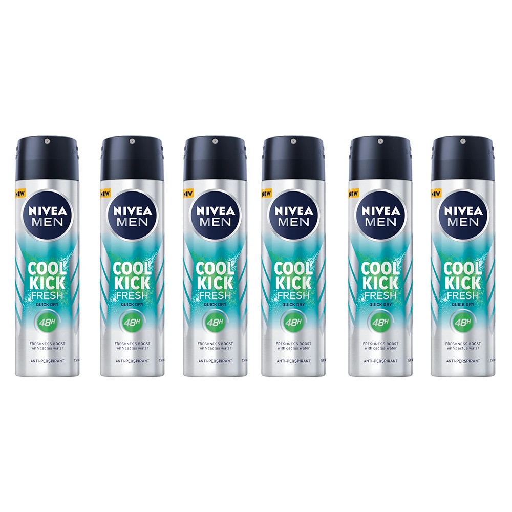 6 X NIVEA MEN Cool Kick fresh Anti-Perspirant Deodorant body Spray - 150ml