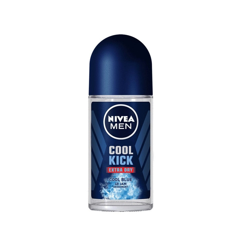 NIVEA Men Cool Kick Extra Dry Cool Blue Deodorant Roll on 50mL | Antiperspirant for Long-Lasting Freshness | Cool Blue Scent | Alcohol-Free