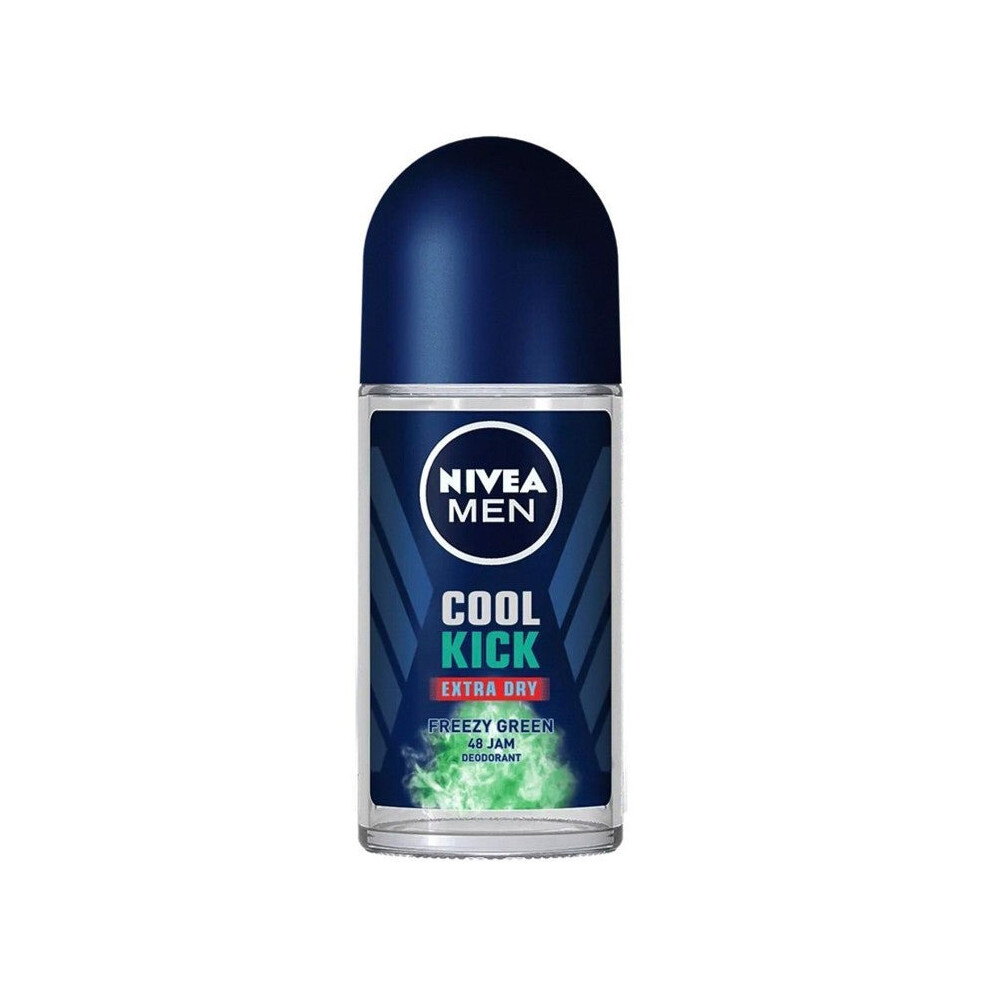 NIVEA Men Cool Kick Extra Dry Freezy Green Deodorant Roll-On 50mL | Anti-Perspirant | Long-Lasting Odor Protection | Refreshing Scent | Alcohol-Free