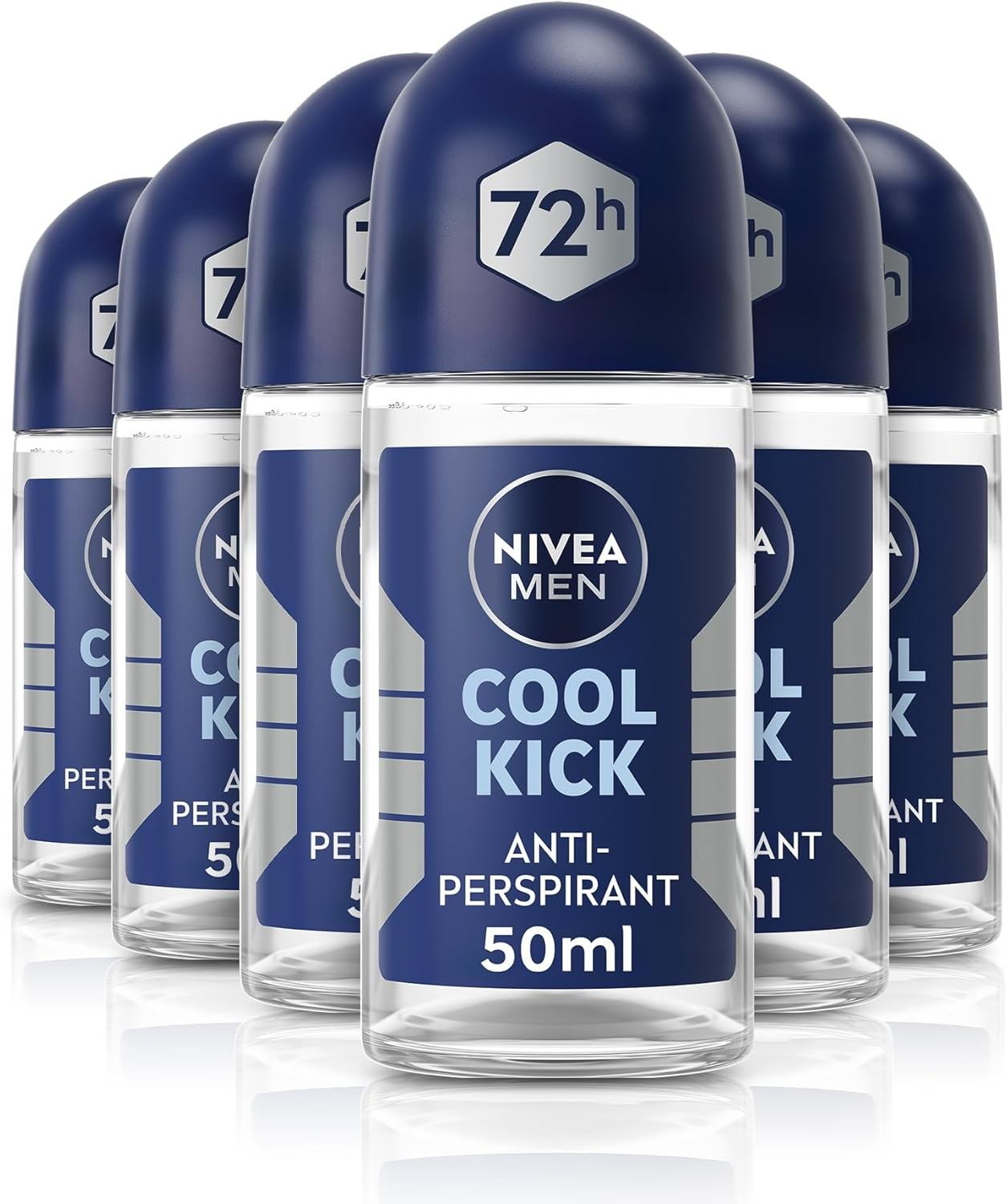 NIVEA MEN Cool Kick Anti-Perspirant Deodorant Roll On Pack of 6 (6 x 50 ml), Men's Anti-Perspirant Deodorant, Fresh Men's Roll On Deodorant + Fresh
