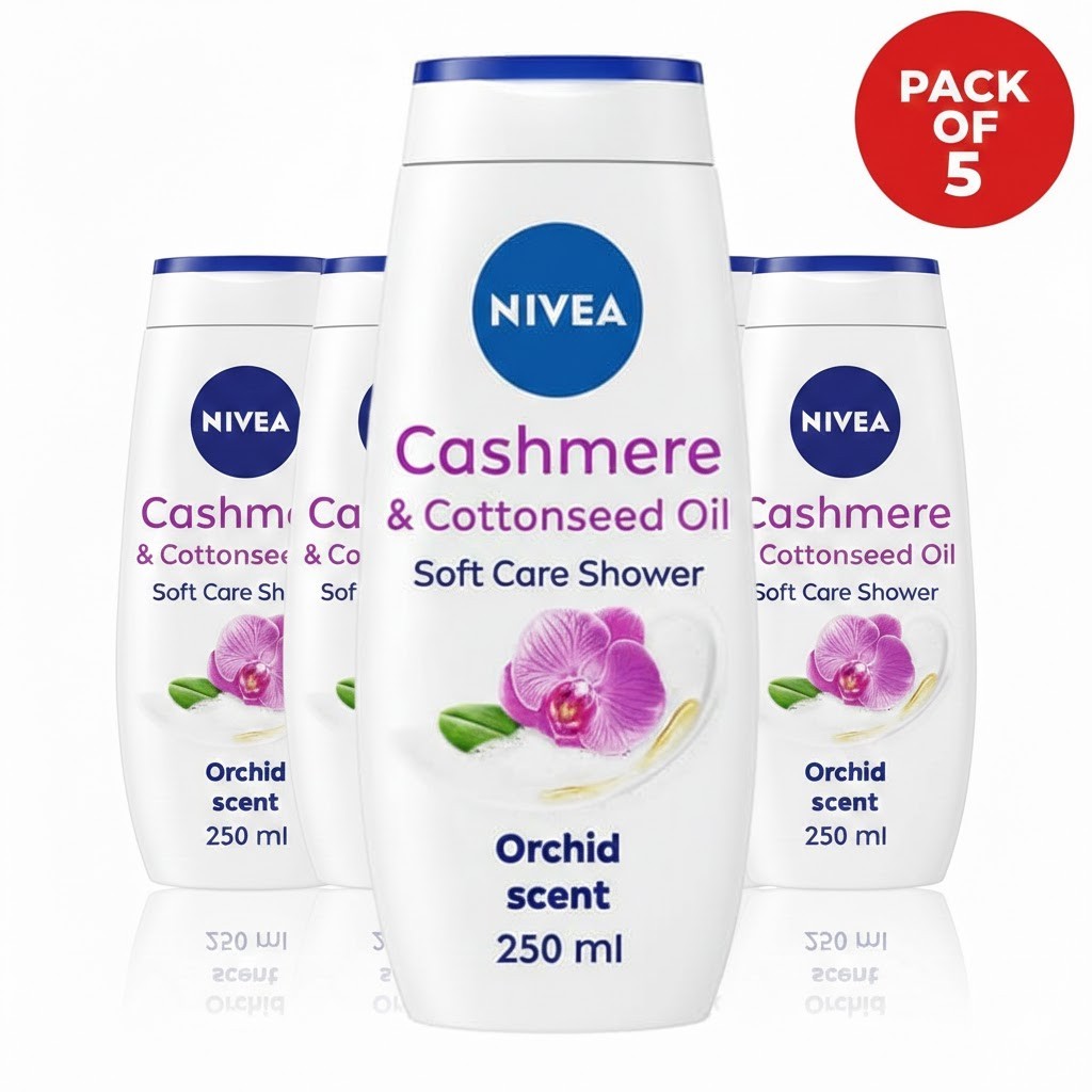 5 X Nivea CASHMERE & COTTON SEED OIL Shower Cream Creme 250ML