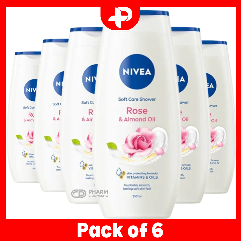 Nivea Female Soft Care Soft Skin Shower Cream Rose & Almond Milk 250ml Pack of 6