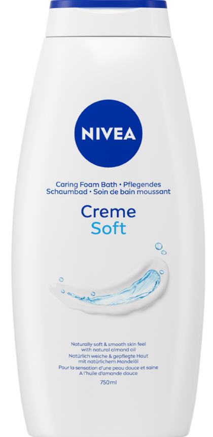 NIVEA Crème Soft Shower & Bath Foam (750ml), Caring Bath Body Cream Enriched w