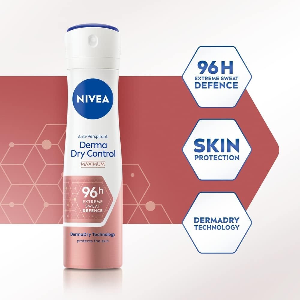 NIVEA Derma Dry Control Antiperspirant 96H Deodorant Spray (200 ML), Women'S Deo