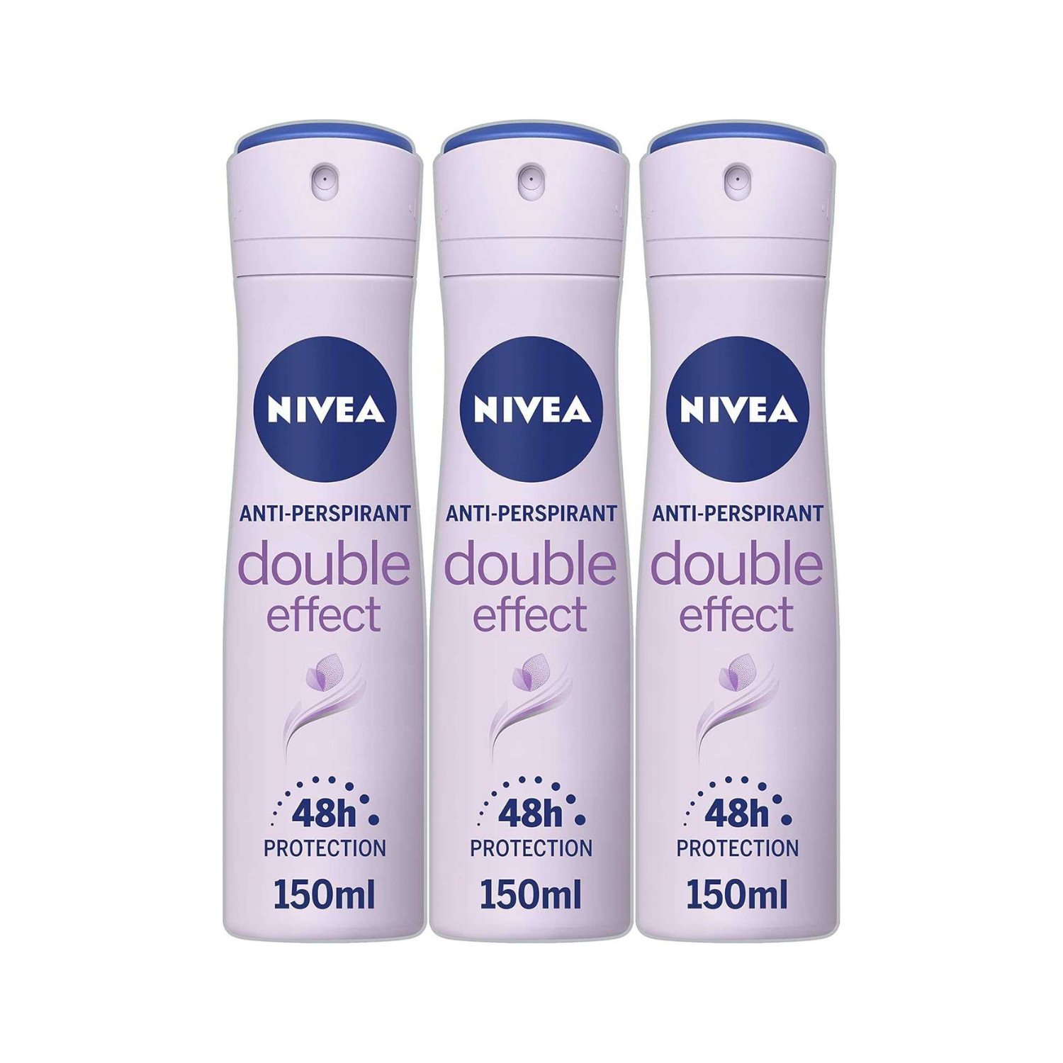 NIVEA Women's Anti-Perspirant Spray, Double Effect, 150 ml (Pack of 3), White