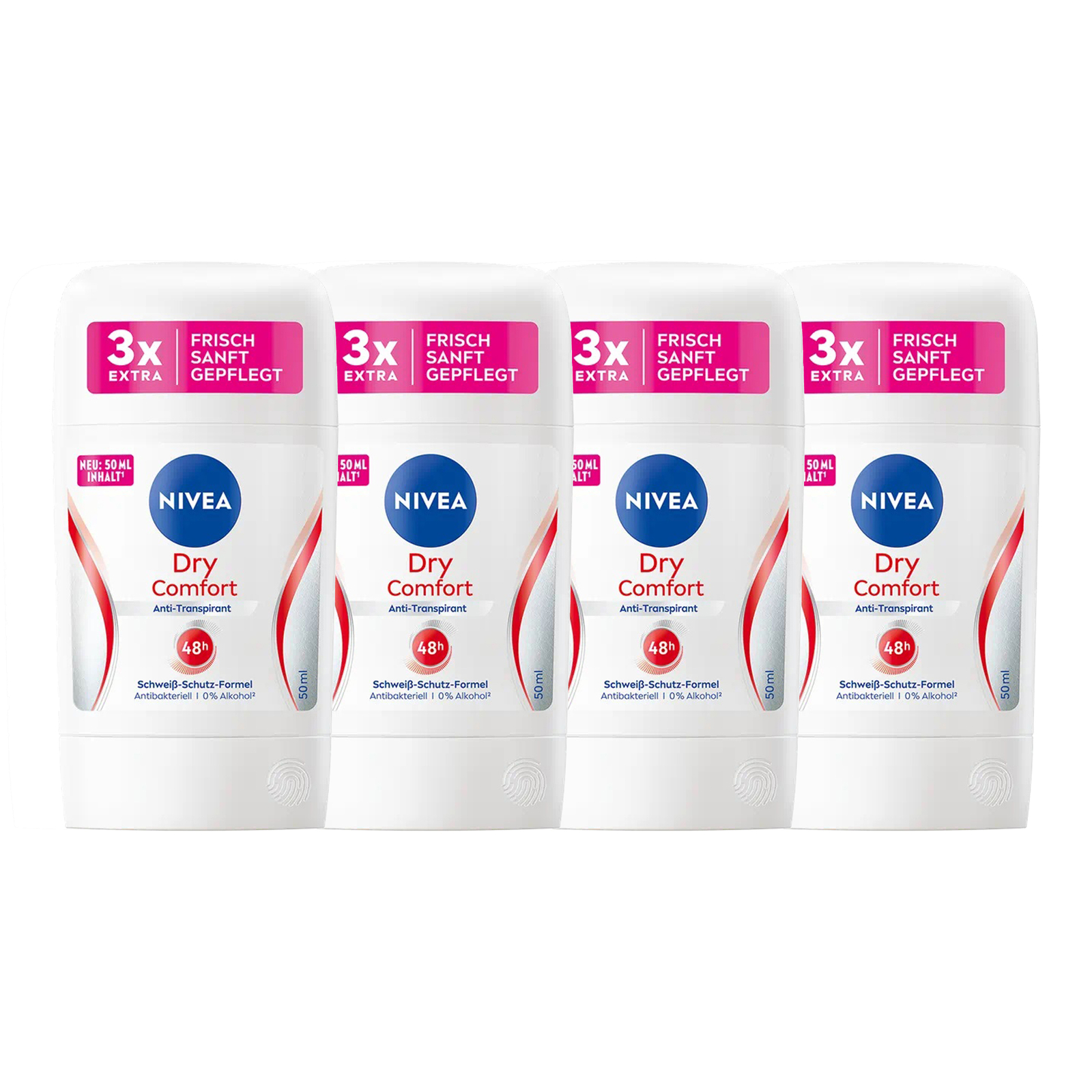 Nivea Dry Comfort Plus Antiperspirant Deodorant Stick 50ml 4 Pack