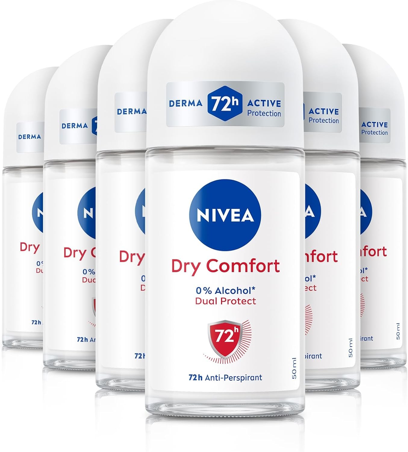 NIVEA Dry Comfort Anti-Perspirant Deodorant Roll on (6 X 50Ml), Women'S Anti-Per