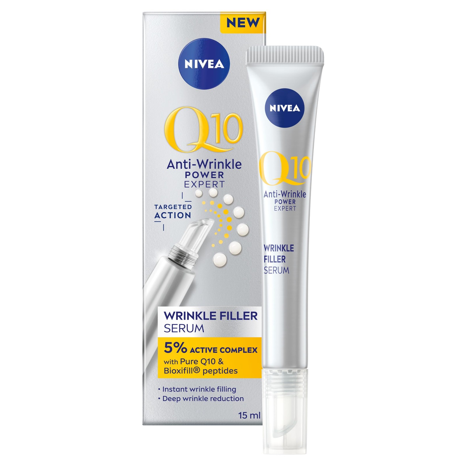 NIVEA Q10 Anti-Wrinkle Power Expert Wrinkle Filler Serum (15ml), Face Serum with Pure Coenzyme Q10 and Bioxifill Peptides Reduces Fine Lines and Wrink