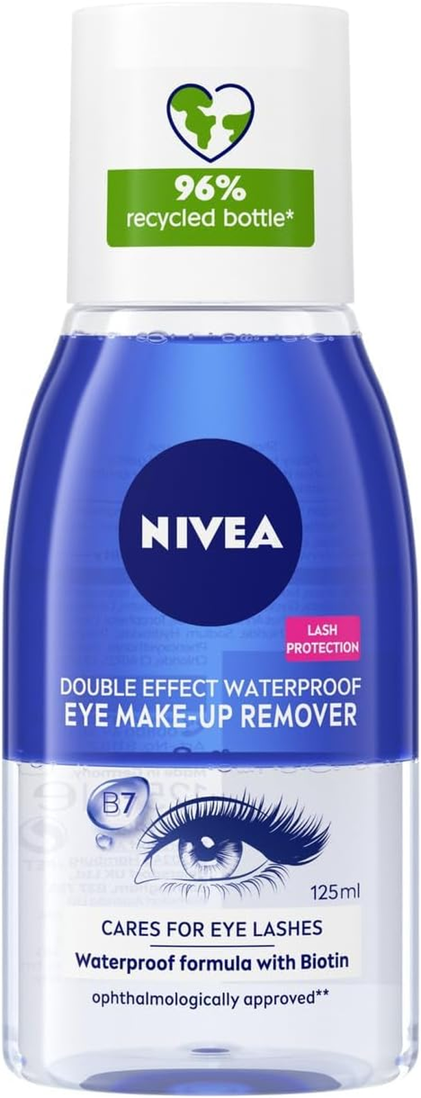 NIVEA Double Effect Waterproof Eye Make-Up Remover (125ml), Daily Use Face Cleanser for and Mascara with Cornflower Extract Biotin