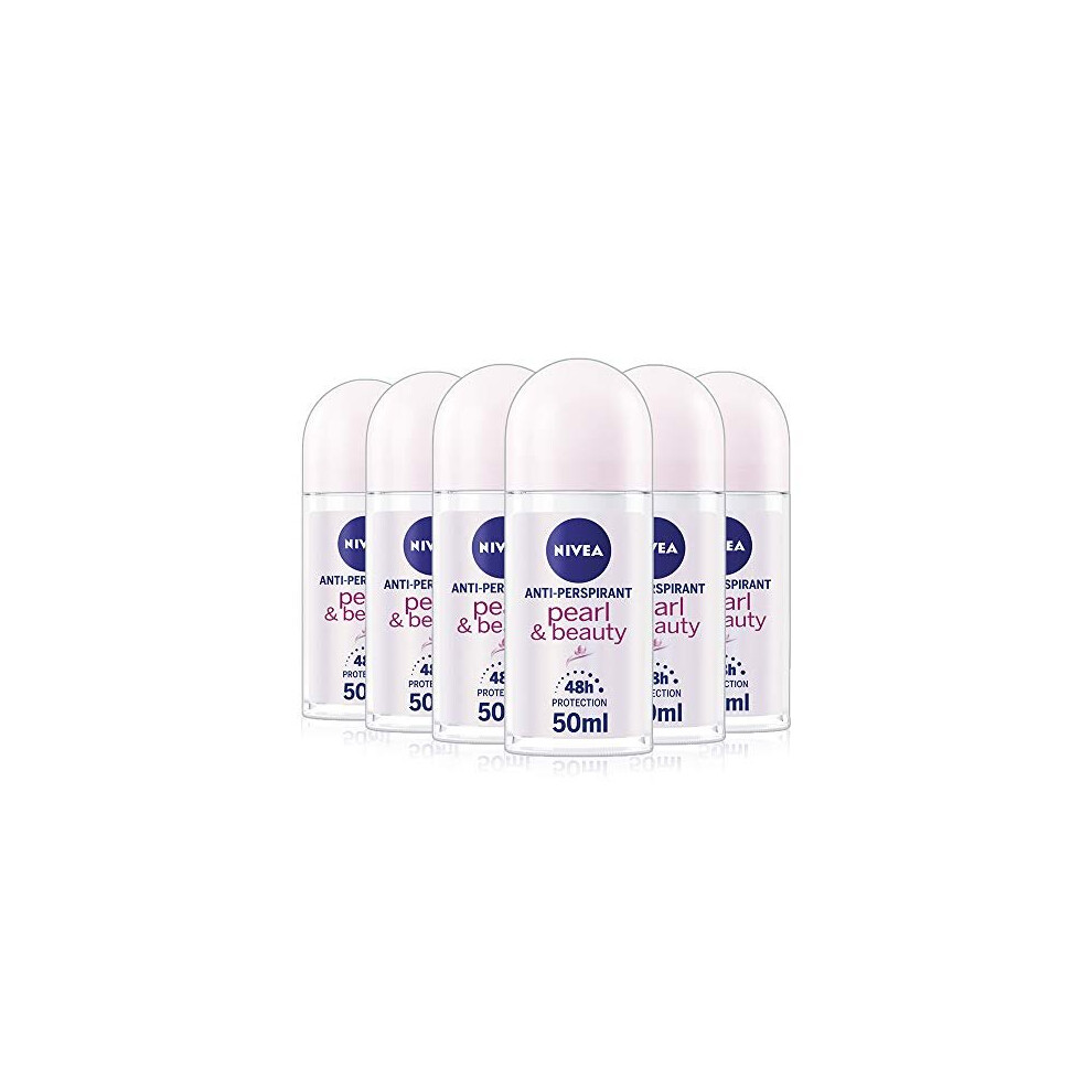 NIVEA Pearl & Beauty Anti-Perspirant Deodorant Roll-On (50 ml, Pack of 6), Fresh Fragrance Deodorant for Women, Roll-On Deodorant for Women,