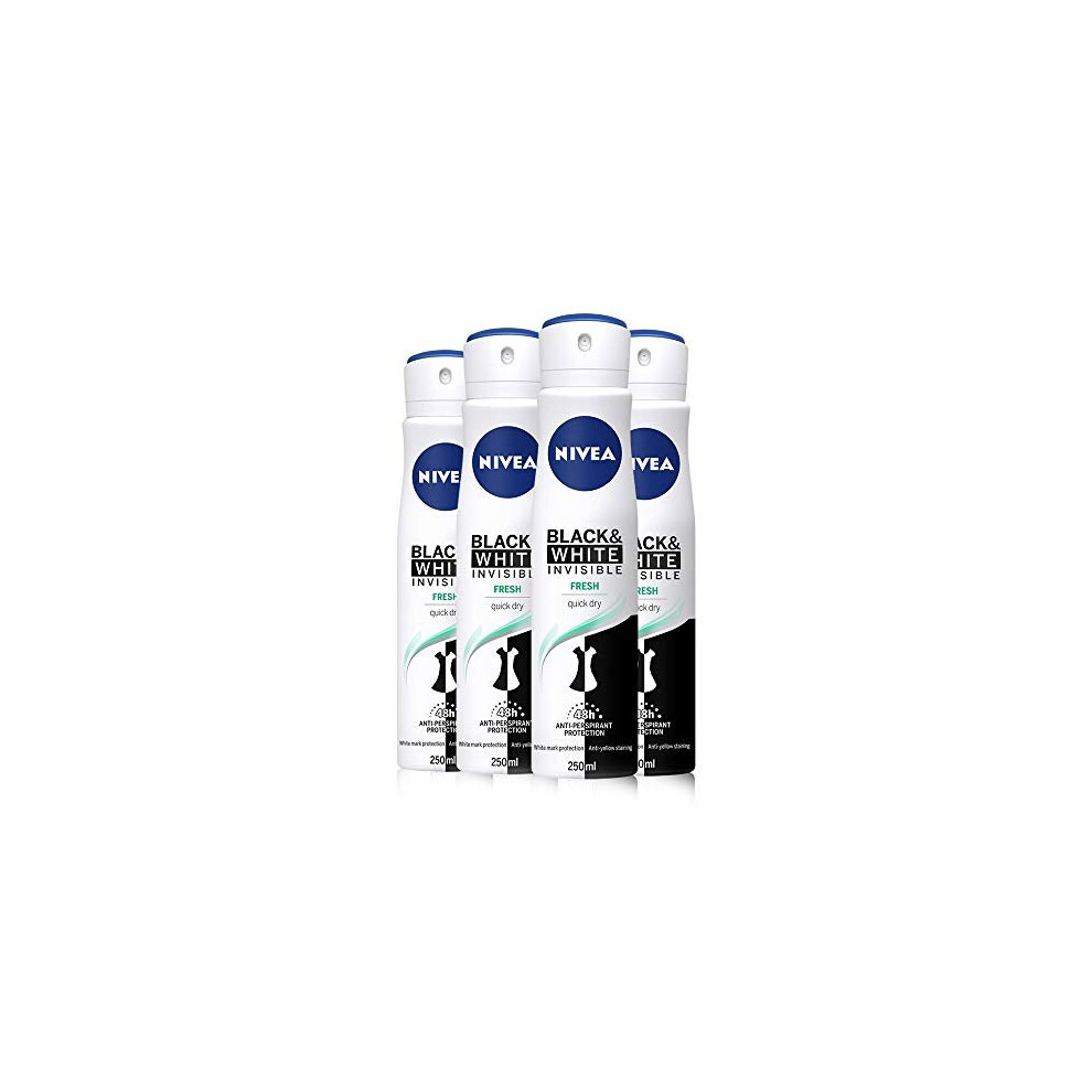 NIVEA Black & White Invisible Fresh Anti-Perspirant Deodorant Spray Pack of 4 (4 x 250ml), 48hr Fresh Fragrance Deodorant for Women, Anti-Pe