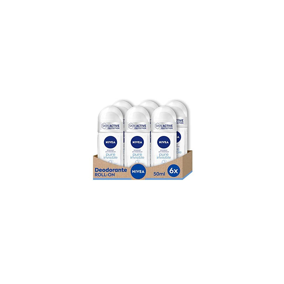 Nivea Pure Invisible Roll-On Deodorant in Pack of 6 x 50 ml, Antiperspirant, Gentle Fragrance, Regulates Transpiration and Leaves No Residue