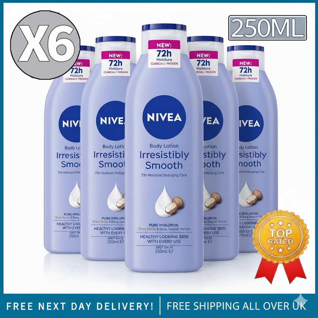 6 x Nivea Body Lotion Irresistibly Smooth 250ml