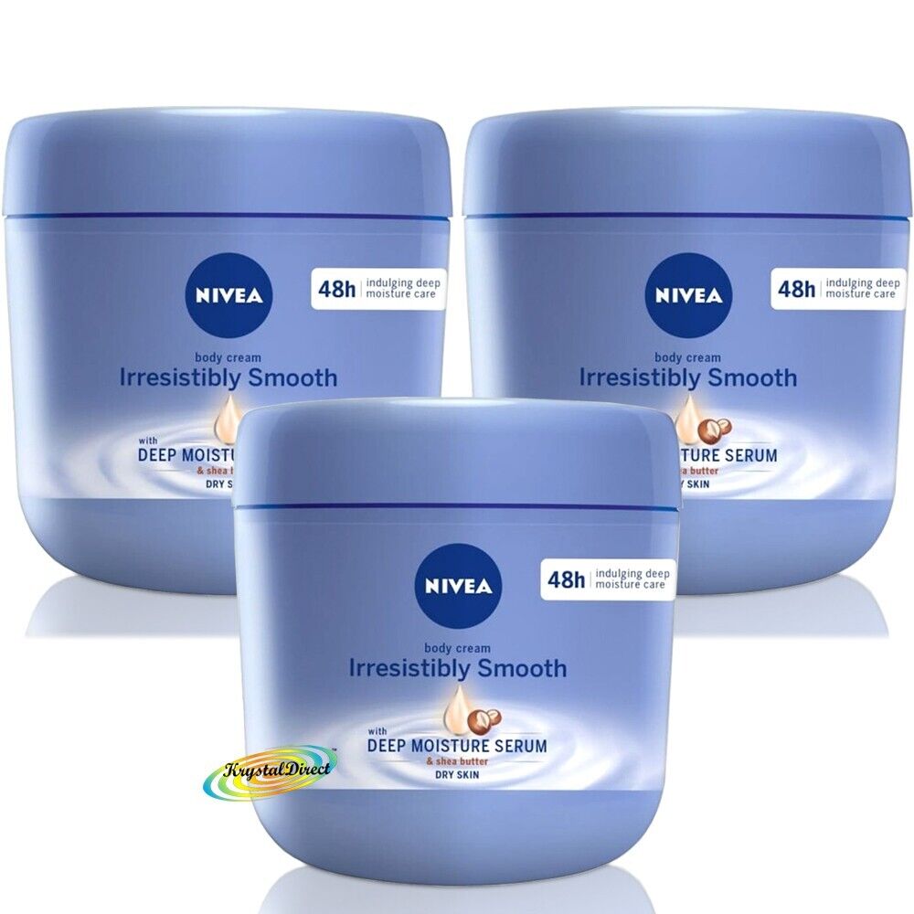 3x Nivea Body Cream IRRESISTIBLY SMOOTH Deep Moisture Serum Dry Skin 400ml