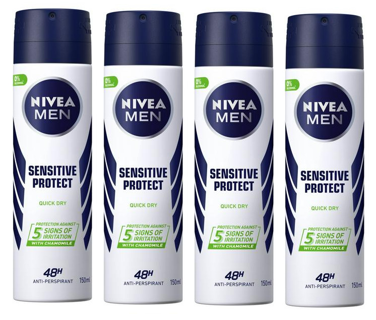 4x Nivea Men Sensitive Protect Anti Perspirant Deodorant Spray 150ml