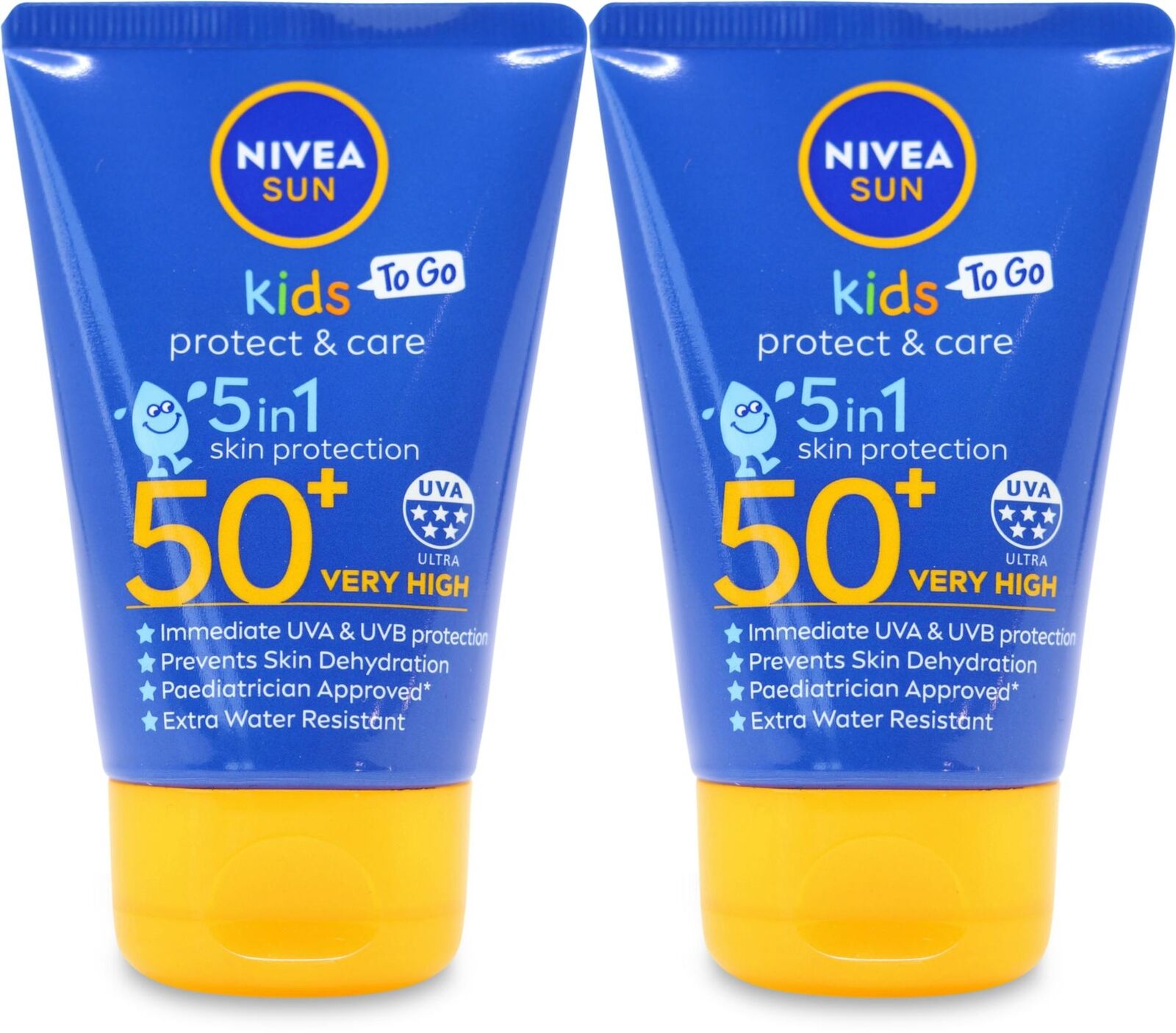 NIVEA SUN Kids | Protect & Care SPF50+ Sun Cream | 5 in 1 Protection | 2 x 200ml