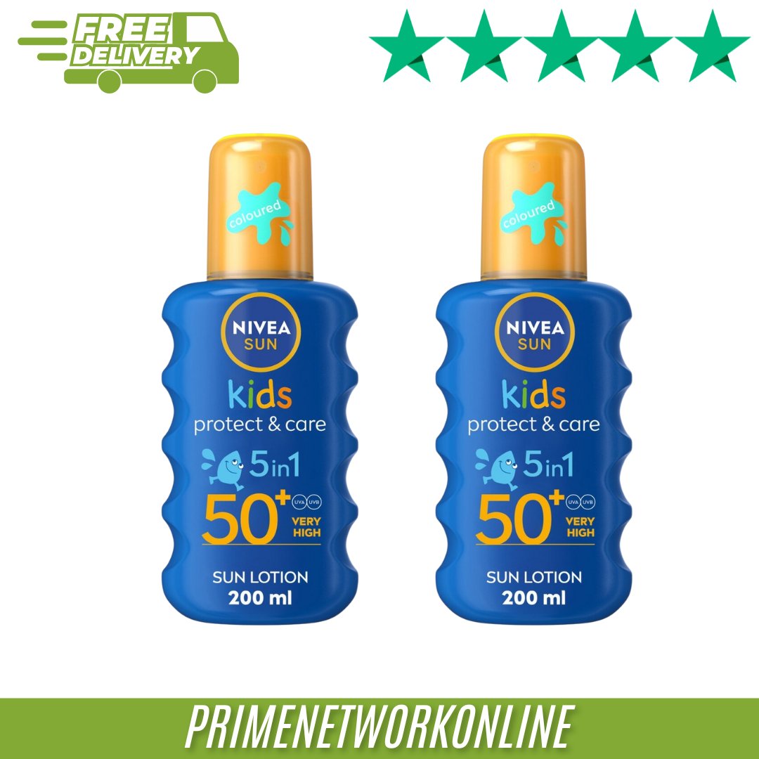 2X NIVEA SUN Kids Protect & Care Coloured Spray SPF50 200ml 100% ORIGINAL ⭐⭐⭐⭐⭐