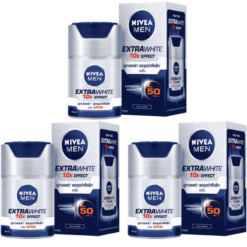 50 ml x 3 Nivea Serum Cream MEN Extra Bright Super Serum SPF50 Moisturizer 50ml