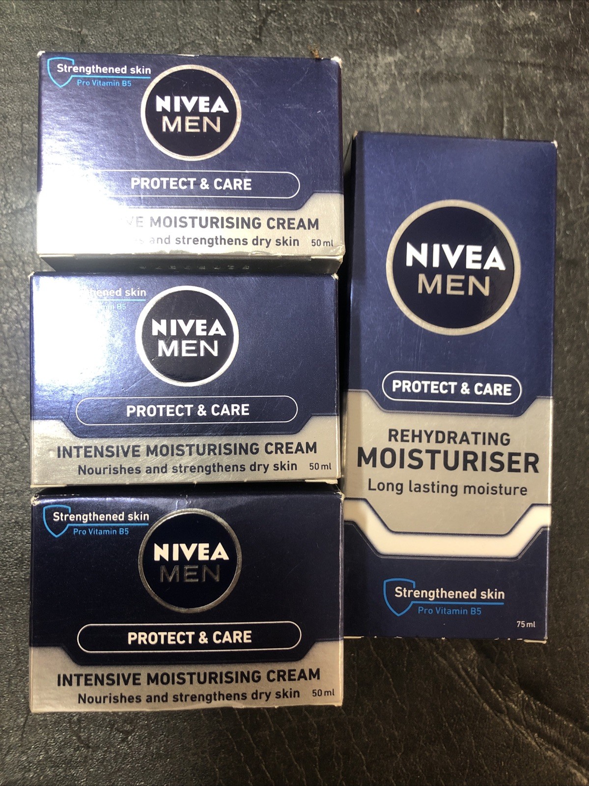 3 x NIVEA MEN INTENSIVE MOISTURISING CREAM 50ML + REHYDRATING MOISTURISER