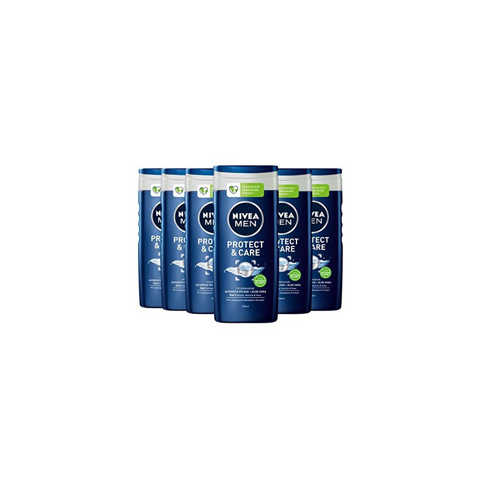 NIVEA MEN Protect & Care Shower Gel (6 x 250 ml), Moisturising Shower Gel with Aloe Vera, Mild Shower for Masculine Nourished Skin