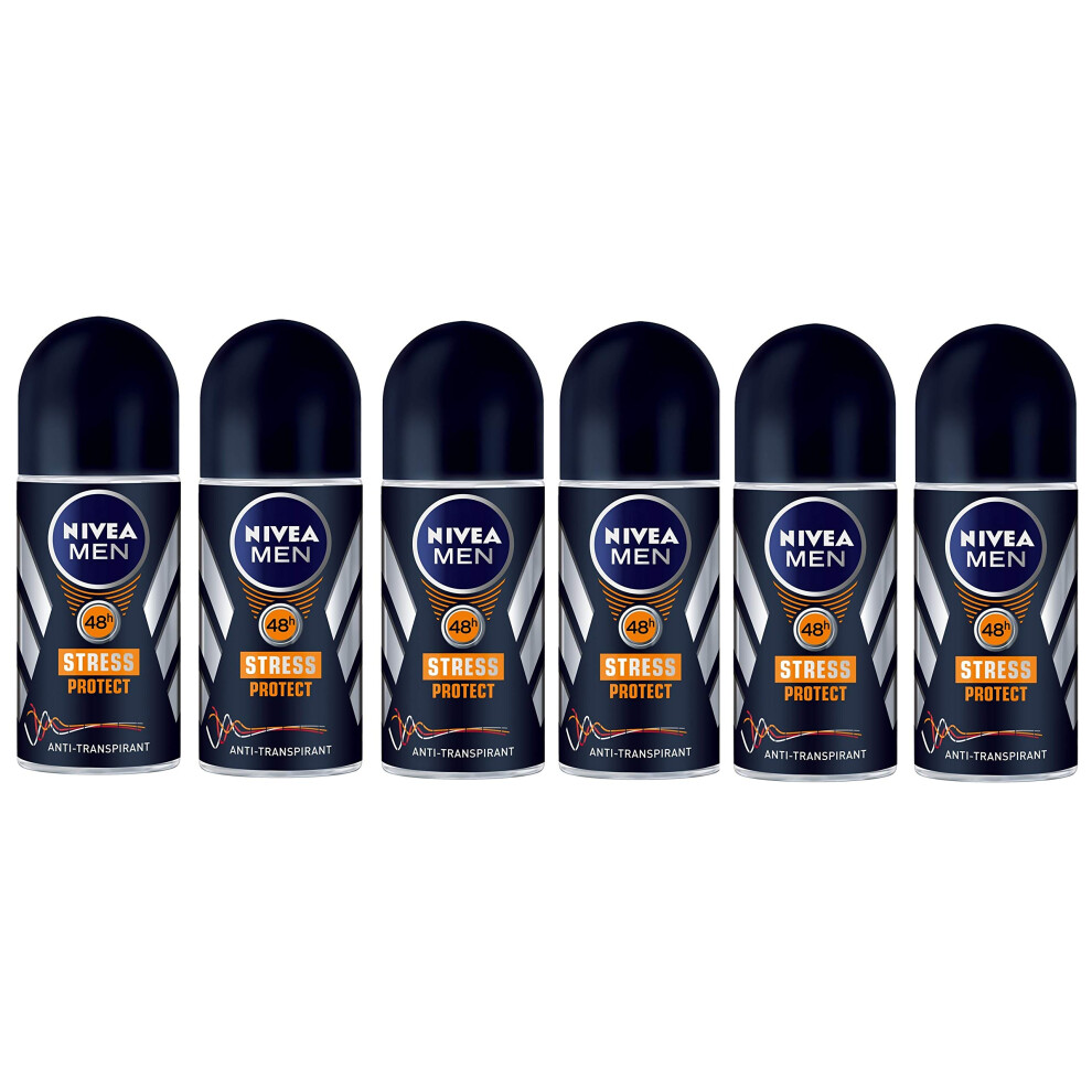 Nivea Men Stress Protect Antiperspirant Roll-On Male Deodorant Pack of 6 x 50 ml