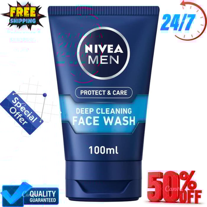 NIVEA MEN Deep Cleaning Face Wash Protect & Care (100 ml) 100 ml (Pack of 1)