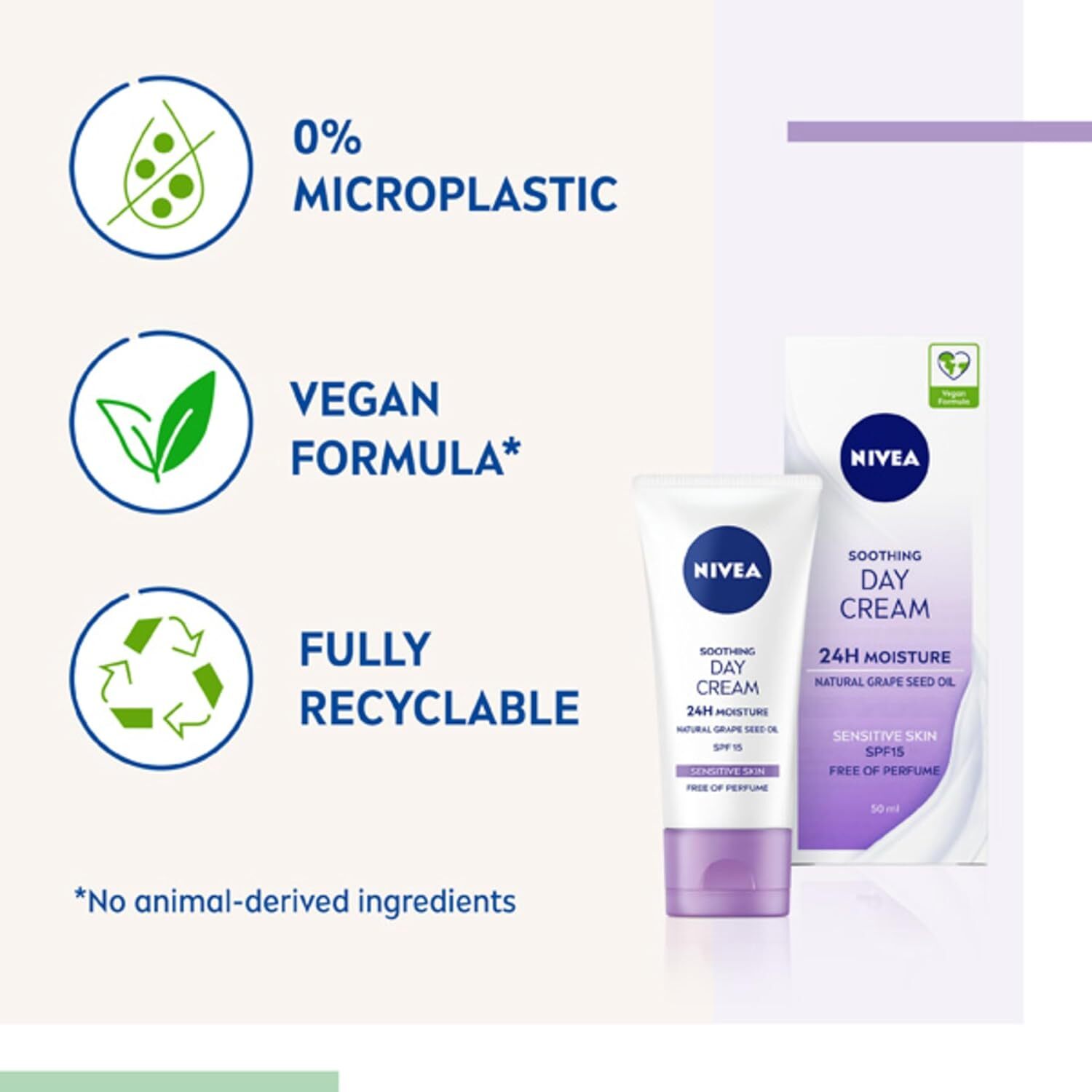 NIVEA Sensitive Day Cream (50 Ml), Face Cream and Moisturiser with SPF 15 for Se