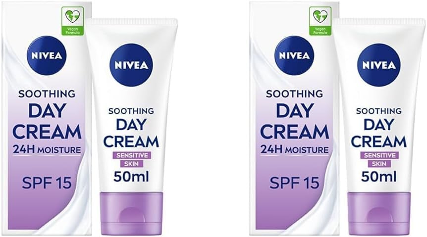 2xNIVEA Sensitive Day Cream (50 ml), Face Cream and Moisturiser with SPF 15