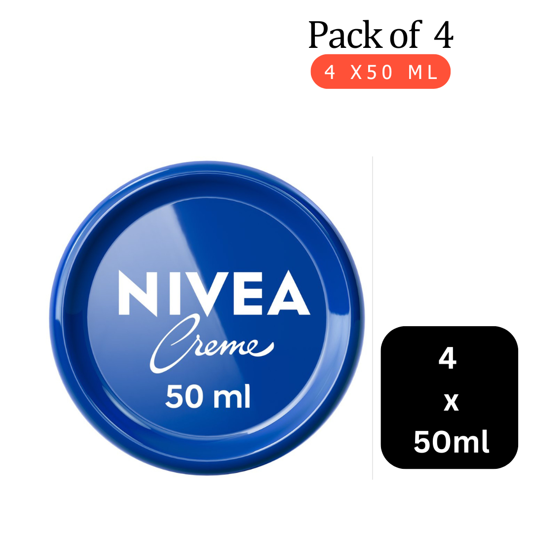 NIVEA Creme Moisturiser Face Body & Hands Pack of 4 X 50ML