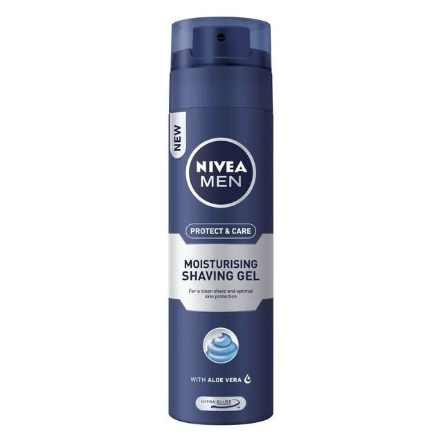 NIVEA MEN Protect & Care - Moisturising Men Shaving Gel - Beard Care - Enriched With Aloe Vera & Pro-Vitamin B5 - Smooth Glide & Close Shave - For Dry Skin - 200 ml