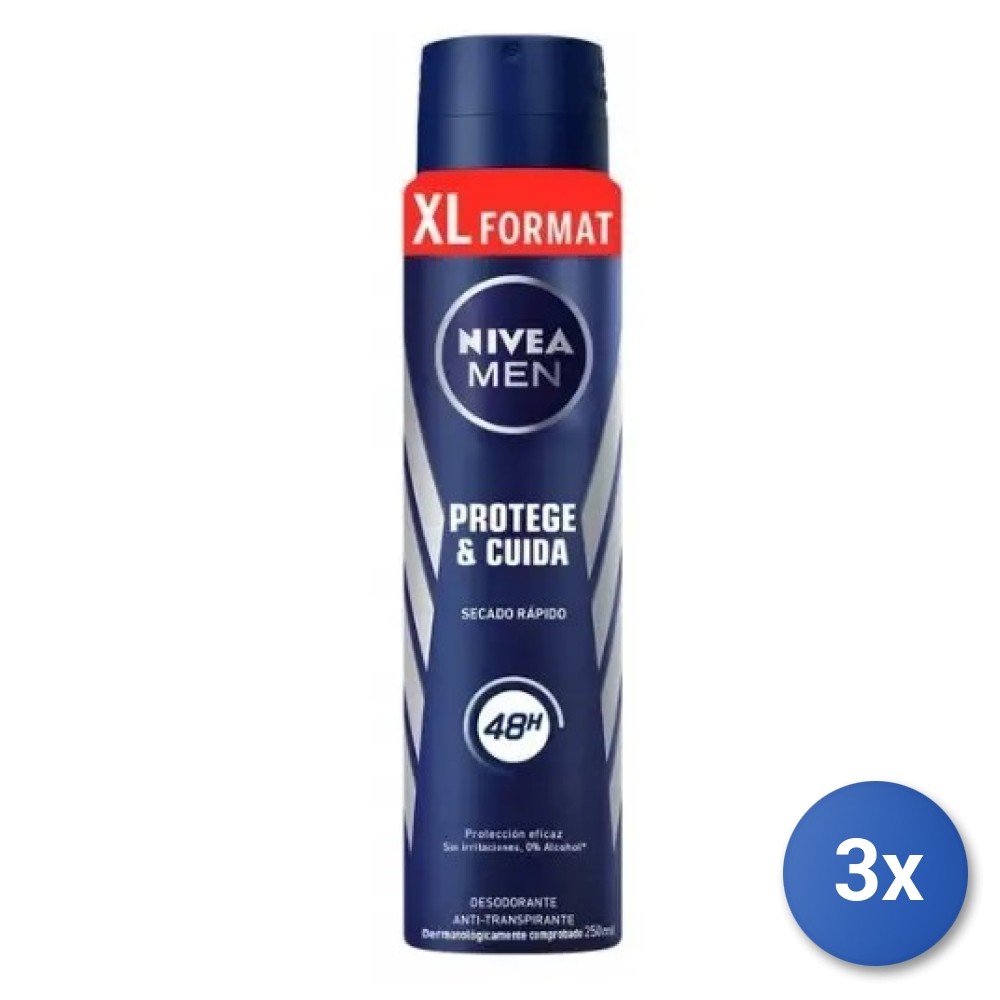 3X Nivea Deodorant Spray 250 Ml. Men's Protect&Care Quick Dry