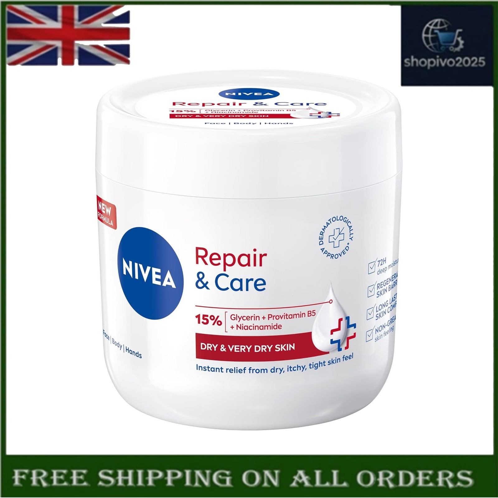 NIVEA Repair & Care Urea Cream 400ml Deep Moisture Dry Skin Face Body Hand UK