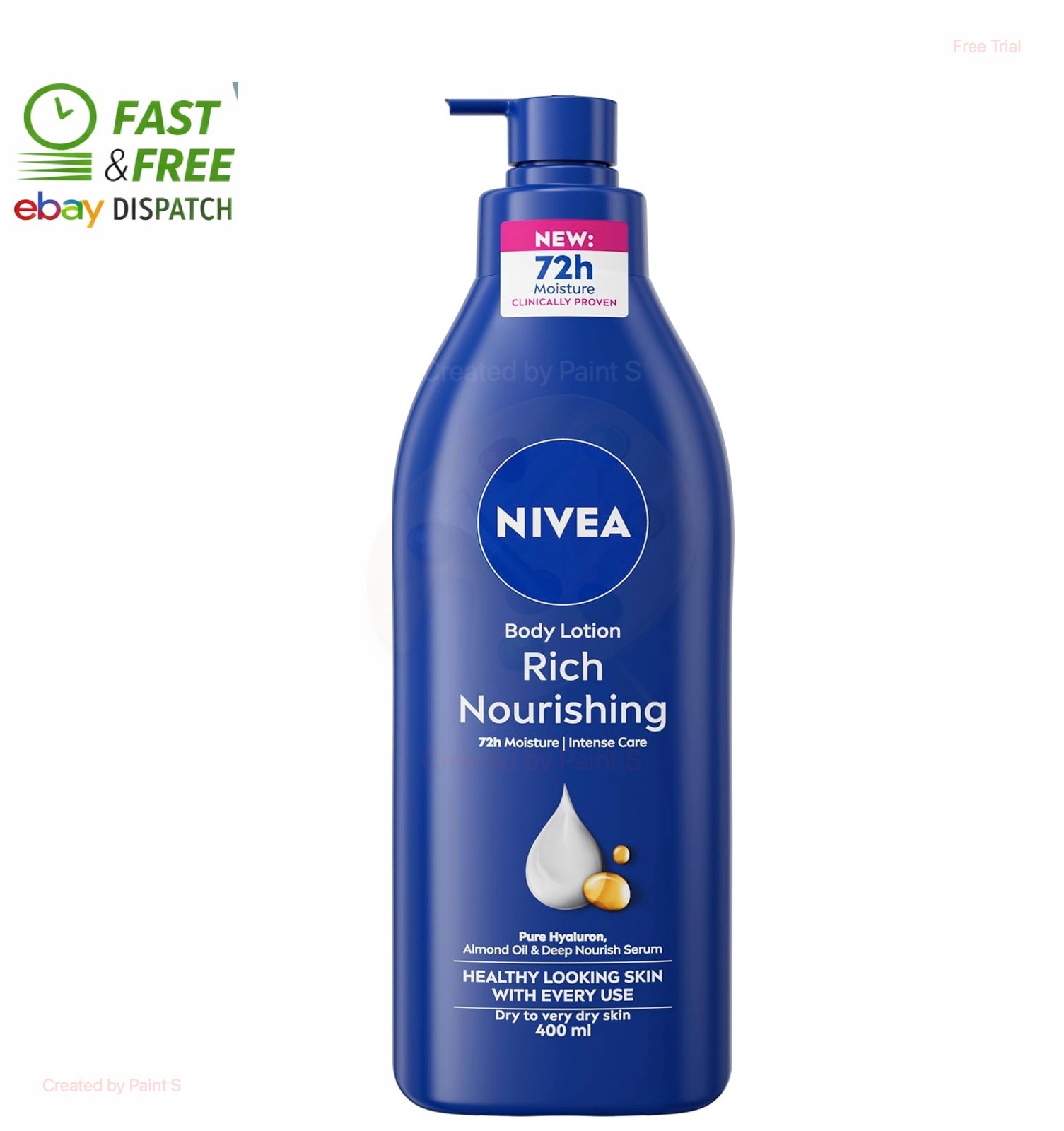 NIVEA Rich Nourishing Body Lotion 400ml 72h Moisture Intensive Care Dry Skin Use