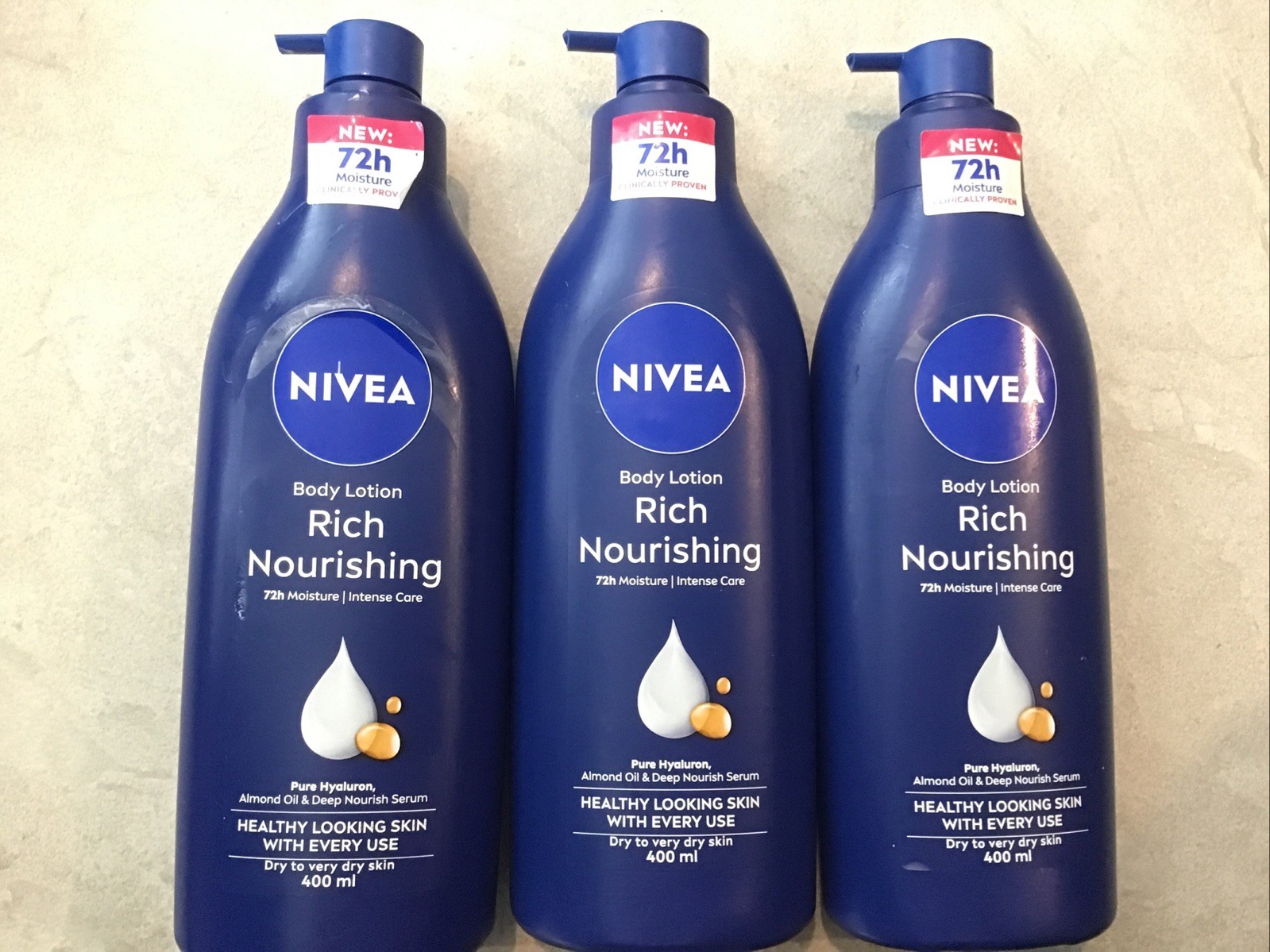 3 X Nivea Rich Nourishing Body Lotion 72h Moisture 400ml X 3 Bottles