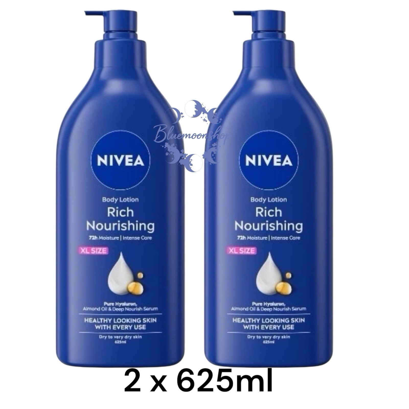 2 x Nivea Rich Nourishing Body Lotion (625ml), Rich 72H Hydration Moisturiser
