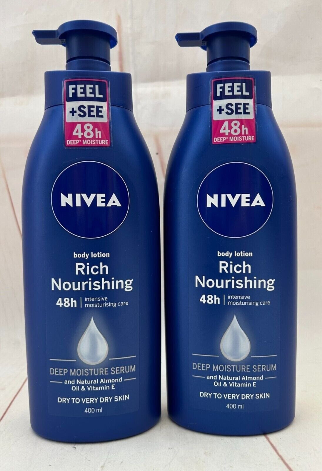 2 x NIVEA Rich Nourishing Body Lotion 400ml Rich 72H Hydration for Dry Skin