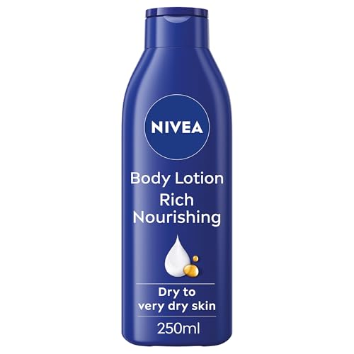 NIVEA Rich Nourishing Body Lotion (250ml), Rich 72H Hydration NIVEA Moisturiser for Dry Skin Made with Deep Moisture Serum and Almond Oil, Intensive Hydration NIVEA Body Lotion
