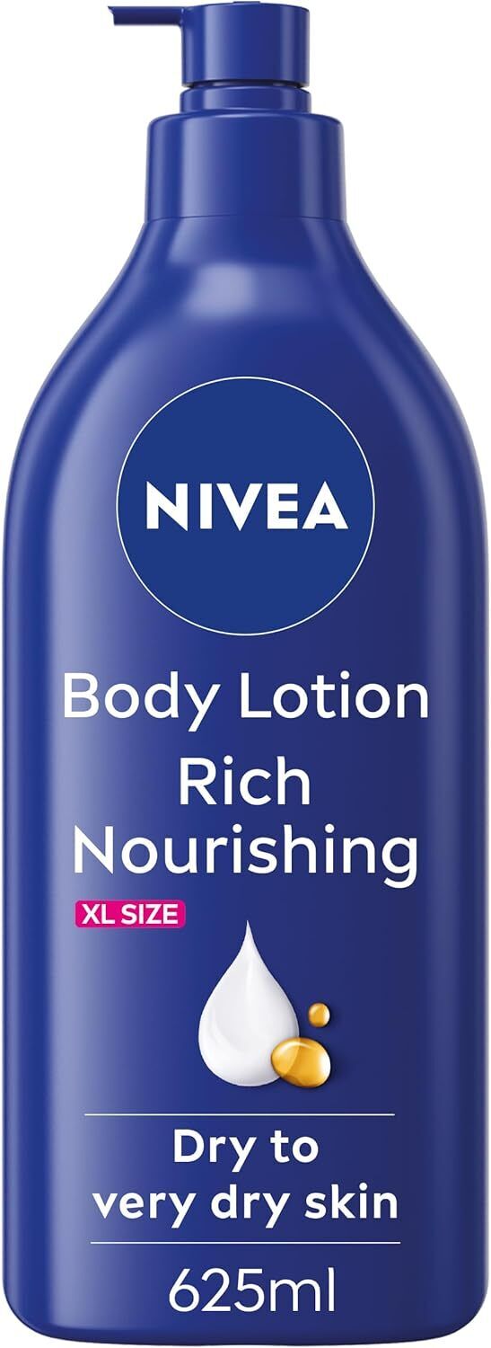 NIVEA Rich Nourishing Body Lotion (625ml), Rich 72H Hydration Moisturiser for Dry Skin Made with Deep Moisture Serum and Almond Oil, Extra Large NIVEA Body Lotion