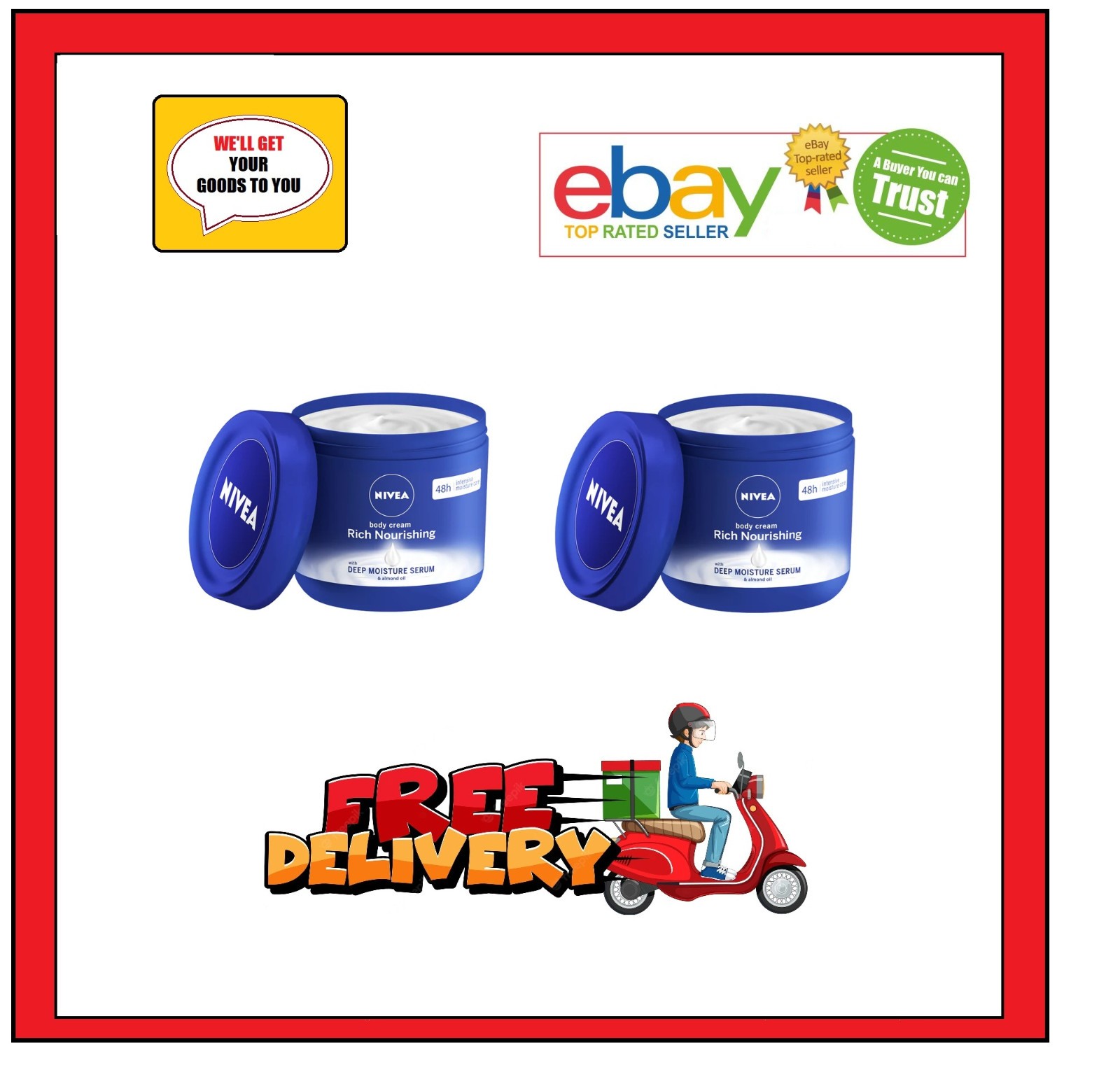Nivea Body Cream Rich Nourishing With Deep Moisture Serum & Almond Oil 2 x 400ml