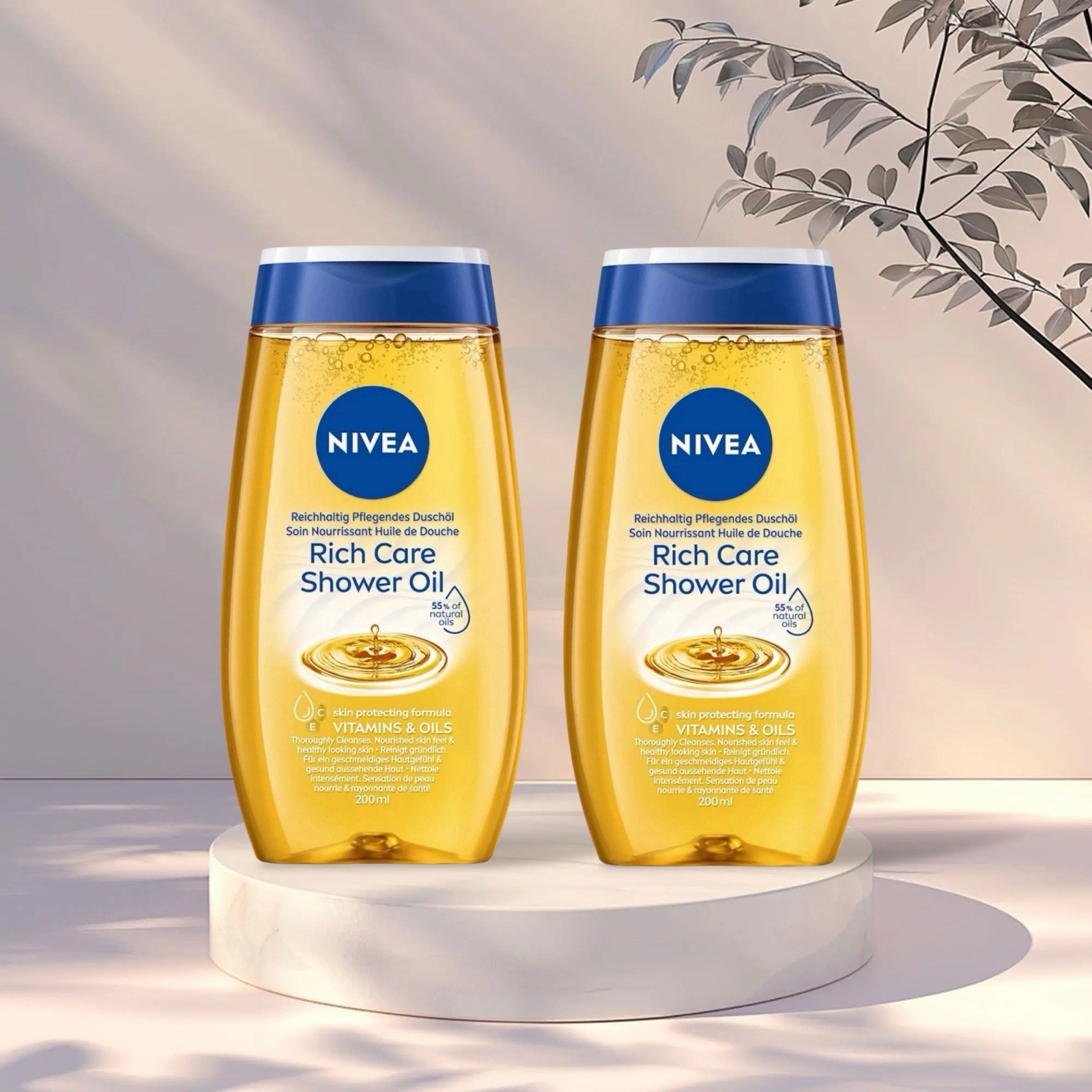 NIVEA Rich Care Shower Oil with Natural Oils & Vitamin 200 ml-2 Pack