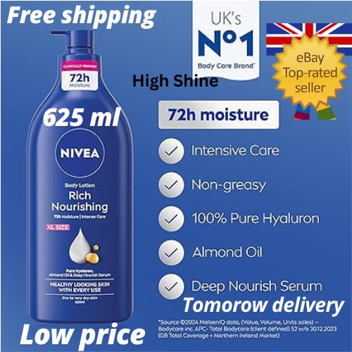 NIVEA Rich Nourishing Body Lotion 625ml, Rich 72H Hydration NIVEA Moisturiser UK
