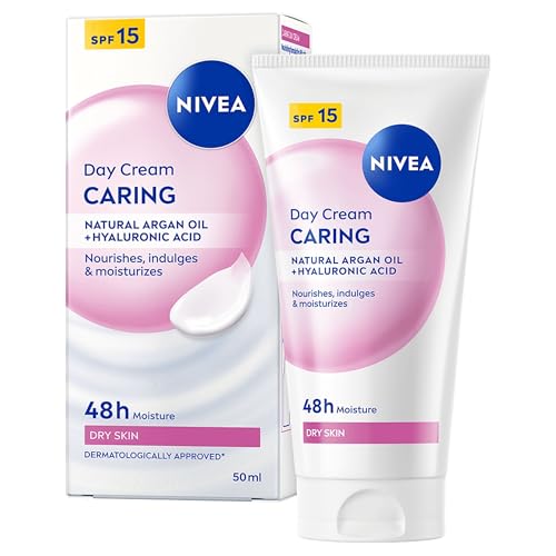 NIVEA Face Cream Rich Moisturiser for Dry & Sensitive Skin, Nourishing Day Cream with Shea Butter and SPF 15, Skin Care Essentials, 50ml, Pack of 4