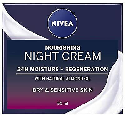 NIVEA Rich Regenerating Face Night Cream (50ml, Pack of 3), Almond Oil Moisturiser for Sensitive & Dry Skin, Perfect for Night time Skin Care Routines