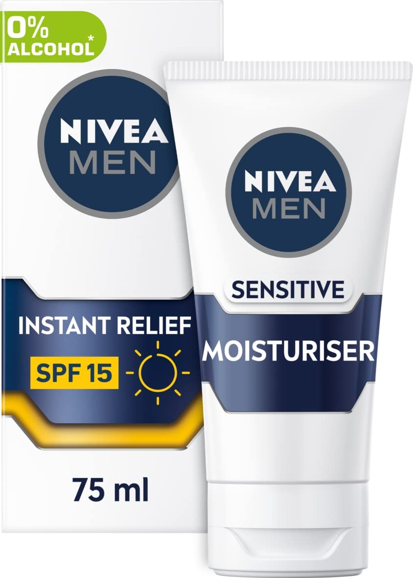 NIVEA MEN Sensitive Face Moisturiser SPF15 (75ml), 0% 75 ml (Pack of 1)